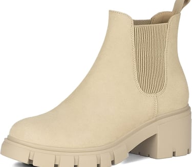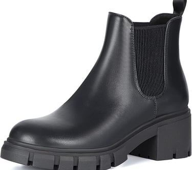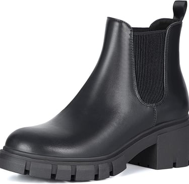 Shop NowAthlefit Women's Chelsea Boots Fashion Lug Sole Chunky Heel Slip on Elastic Ankle Booties