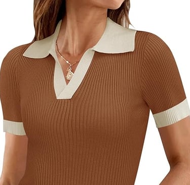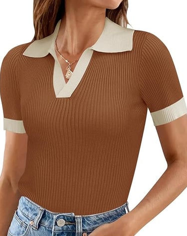 Womens Polo Shirts Long Sleeve Ribbed Knit Sweater Slim Fit Blouses
