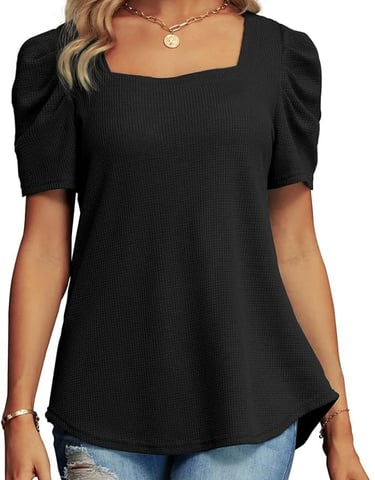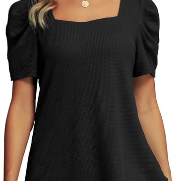 Shop NowIWOLLENCE Puff Sleeve Square Neck Summer Tops for Women Waffle Knit Womens Tunic Tops Dressy Casual Short Sleeve Shirts