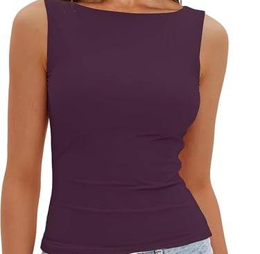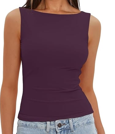 Darong Women's High Neck Tank Top Sleeveless Double Lined Basic Tops Going Out Casual Tank Shirts - Deep Purple