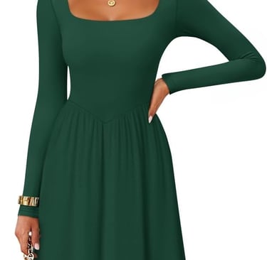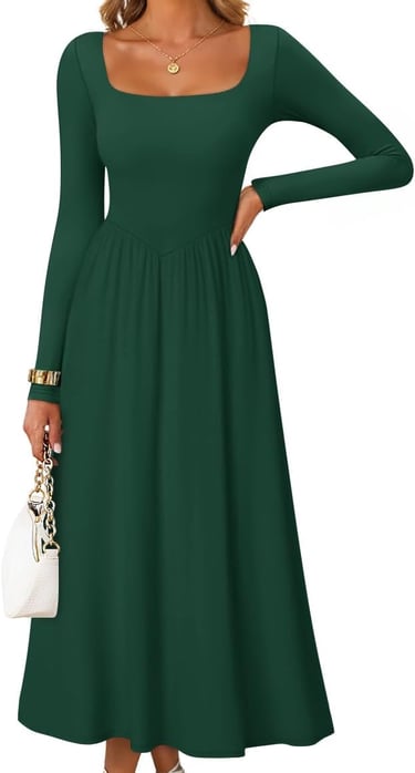 ZESICA Fall Dresses for Women 2025 Square Neck Long Sleeve Flowy Midi Dress