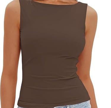 Darong Women's High Neck Tank Top Sleeveless Double Lined Basic Tops Going Out Casual Tank Shirts - Coffee