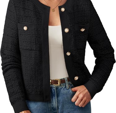 GRACE KARIN Womens Button Down Sweaters Cardigans 2025 Fall Open Front Long Sleeve Knit Tweed Jacket with Pockets