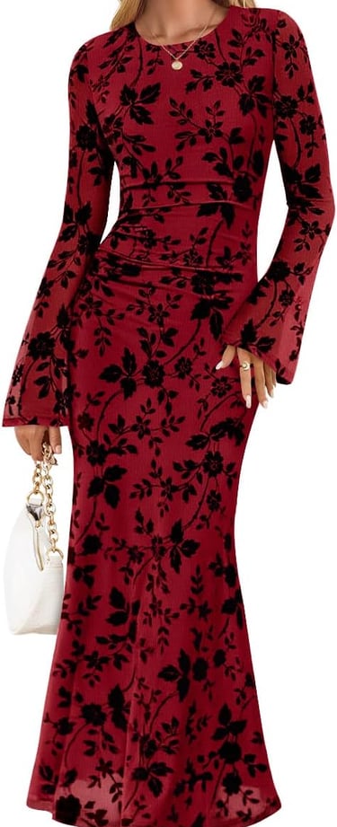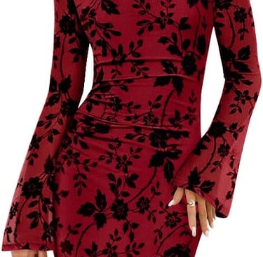 ZESICA Women's Long Sleeve Floral Bodycon Dress