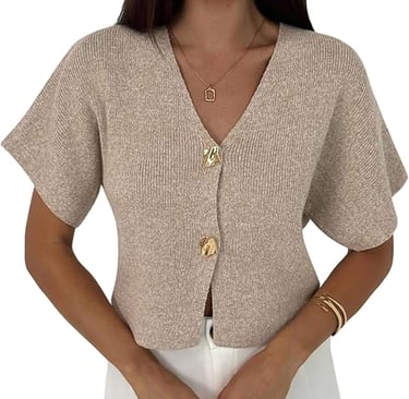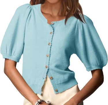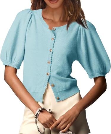 Shop NowSaodimallsu Womens Puff Short Sleeve Cardigan Lightweight Summer Button Down Shirts Knit Crew Neck Sweater Tops