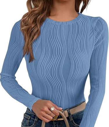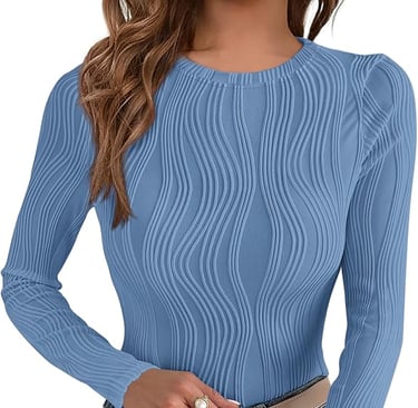 Shop NowPRETTYGARDEN Women's Tops 2025 Fall Fashion Long Sleeve Crewneck Blouse Slim Fit Textured Basic Knit T Shirt Y2k Clothes