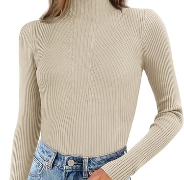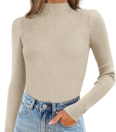 ATHMILE Women's 2025 Fall Long Sleeve Pullover Ribbed Knit Sweater Low Mock Neck Slim Fit Basic Casual Tee Tops