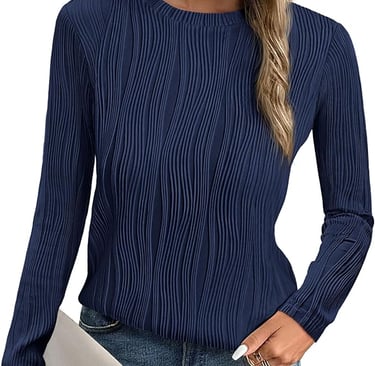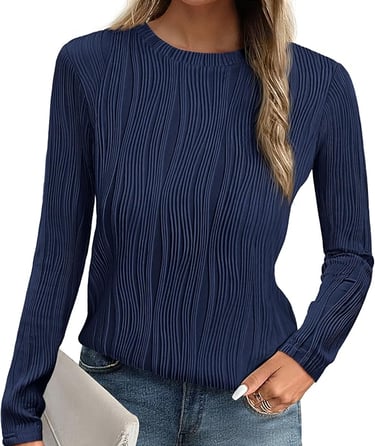 Shop NowPRETTYGARDEN Long Sleeve Tops for Women 2025 Spring Fall Trendy Business Dressy Casual Shirts Crewneck Textured Blouse