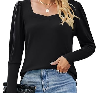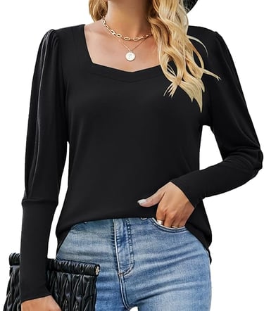 Shop NowIvicoer Square Neck Puff Sleeve Summer Tops Casual T Shirts Long Sleeve Tunic Blouses for Women Loose Fit S-XXL
