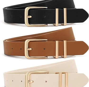 3 Pack Women Belts Leather Waist Belt with Gold Buckle
