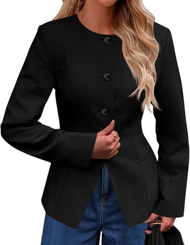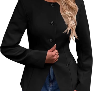 Cicy Bell Womens Business Casual Fitted Blazers Collarless Split Hem Work Office Button Down Suit Jackets