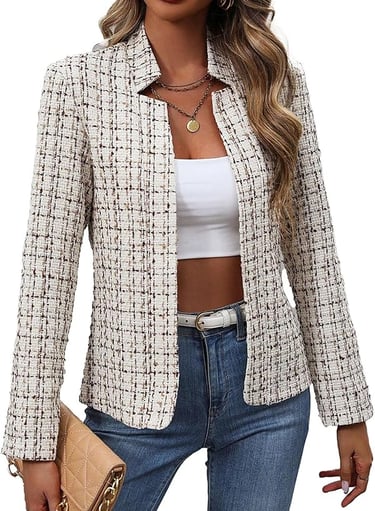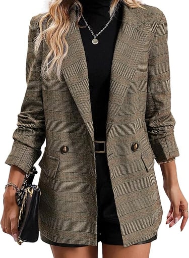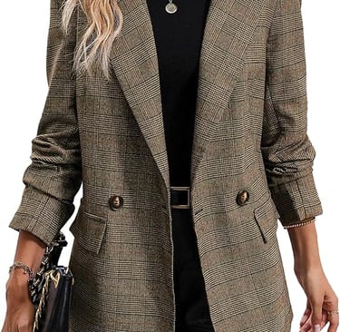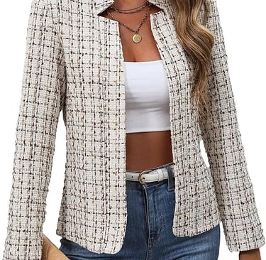 Shop NowMina Self 2025 Fall Women's Plaid Houndstooth Blazer Jacket - Fully Lined Business Casual Elegant Office Suit with Pockets
