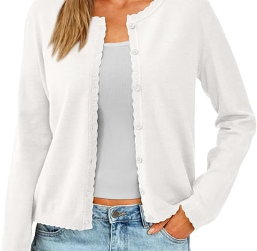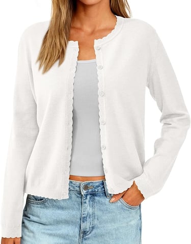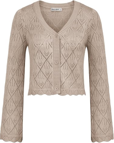 Shop NowGRACE KARIN Cardigan Sweaters for Women Lightweight Button Down Open Front Short Crochet Shrug Long Sleeve V Neck 2024