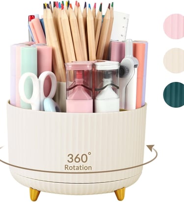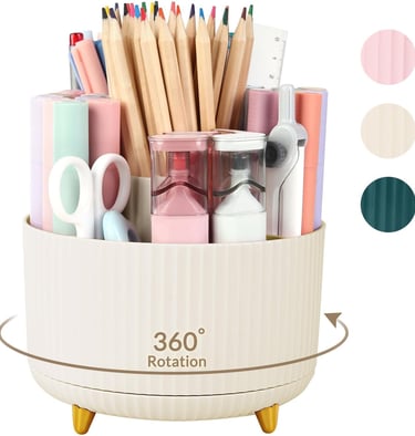 SKYDUE 360 Rotating Plastic Desk Pen Organizer with 5 Slots, Dual-Purpose Art Supply Pencil Cup for Office, School, Home