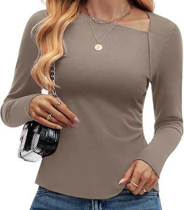 Women's Classy Asymmetrical Neck Long Sleeve Shirts