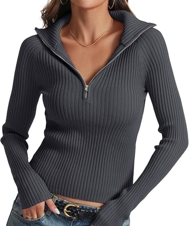 Shop NowPrettywear 2025 Women's Half Zip Pullover Sweaters V Neck Collared Long Sleeve Ribbed Knit Fall Tops Dressy Casual