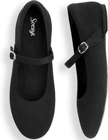Women's Round Toe Ballet Flats Comfortable Mary Jane Shoes Dressy Slip On Knit Flats Adjustable Straps Washable Flats