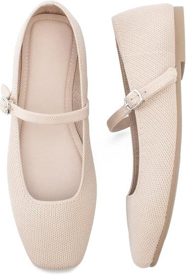 Knit Flats for Women Square Toe Flats Casual Ballet Flats with Ankle Strap,Mary Jane Shoes Women Comfortable for Dressy Office